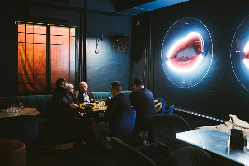 Плюшевый бар с ростовыми керамическими собаками (сидят на главной барной стойке) и неоновой надписью «Окстись» (горит во втором зале) обладает вкрадчивым и временами буйным характером. Каждый раз ловлю себя на мысли, что нигде больше не видела подобной роскошной упаднической атмосферы: панковской и буржуазной одновременно. Тут темно и будет хорошо тем, кто относится к пространству, коктейлям и закуске иронично и легко, без предрассудков. В тарелках будет много нелинейных сюрпризов в духе высокой кухни, но в этом баре гастрономические фокусы настолько естественная вещь, что опасаться не стоит. Я не видела еще ни одного человека, которому не понравился бы паштет в виде мишек Гамми — это забавная выходка и все тут.
