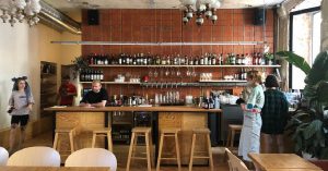 — много посетителей, и среди них кого только не встретишь. Большая компания на веранде дегустирует: «Хороший, звонкий рислинг». Внутри несколько одиночек явно работают вне офиса. Все остальные закусывают с аппетитом и весело хохочут;