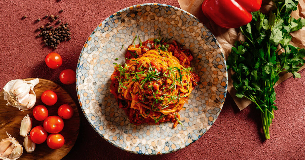 Болоньезе с веганским фаршем и анютины глазки: в Lumicino постная еда не скучнее скоромной