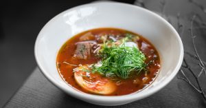 — щи с савойской капустой, телятиной и «дымной сметаной» (460 руб.) предлагаю считать мощным реверансом в сторону слишком долгой зимы.