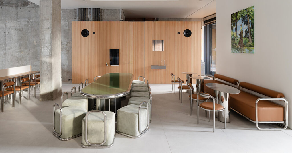 — просторное, если не сказать огромное, пространство напоминает столовый блок на космической станции из кино. Из встроенных репродукторов доносится мягкий рэп. Стерильная чистота;