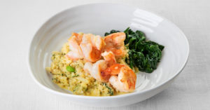 — полезное и вкусное ризотто из цветной капусты с кокосовым соусом и с ощутимым количеством креветок (890 руб.). Соцветия аккуратно нарезаны вручную. Диетическое блюдо, полностью утоляющее голод;