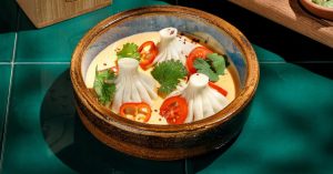 — в меню замечены хинкали с тайским уклоном: хинкали «Том кха» (за 540 руб. с курицей и грибами), а также хинкали «Том ям» за 750 руб. Дожили;