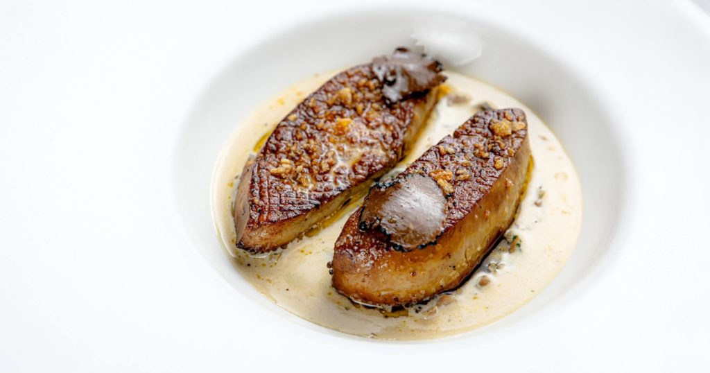 — нежные и золотистые эскалопы из фуа-гра (2900 руб.) выигрывают еще больше благодаря грибному дюкселю — густому и пахучему соусу из мелко нарезанных грибов, шалота и прованских трав. Если вам вдруг приспичило посреди белого дня обнаружить умами — в этой тарелке пятый элемент совершенно точно есть;