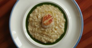 — в ризотто с гребешком и базиликом (1100 руб.) хочется нырнуть с головой и больше оттуда не выныривать. Обволакивающая счастьем еда;