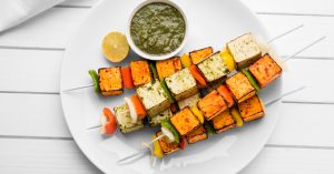 — сливочные и горячие кубики панир тикка прикрыты кусочками печеного перца и лука и подаются с прохладным мятным соусом. Есть этот сыр — все равно что летать во сне;