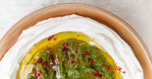 — дип «Лабне/зеленая аджика» (290 руб.) — удивительной пахучести закуска, которую тоже надо есть с бубликом или питой (вкуснее с бубликом, он густо засыпан кунжутом). Зеленая аджика деликатно островата и благоухает свежим кориандром;
