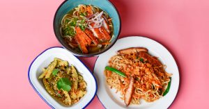 — лапша может быть с креветками, кальмаром и мидиями (690 руб.) или просто с жареными креветками и арахисом (580 руб.) — в любом случае рассчитывайте на разумную порцию и достоверный вкус уличной лапши где-нибудь в неочевидных закоулках Бангкока;