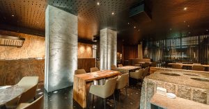 — пространство ресторана устроено так, чтобы вы почувствовали, что находитесь в таинственной лаборатории: кажется, что вот-вот, и прямо у вас на глазах откроют «пятый элемент»;
