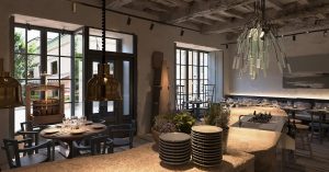 — деревянные балки под потолком чудо как хороши и задают тон всему помещению. Настроение вполне себе французское со свежими цветами на столах;