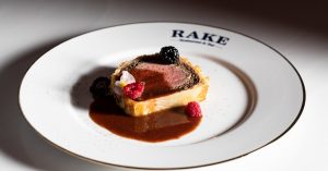 Rake задуман как дорогой ресторан современной американской кухни. В карте блюд замечены краб-кейк с манго, песто из кейла, махи-махи с гратеном из корня сельдерея и буррата с жареным персиком. Самое дешевое блюдо можно найти в гарнирах — это картофель фри за три сотни рублей.