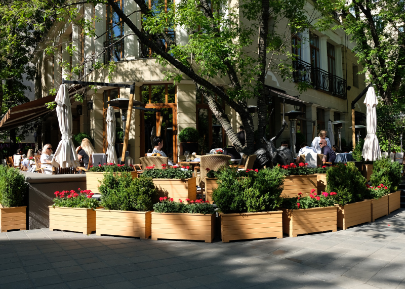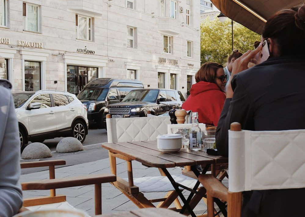 Победить нашу московскую страсть к террасам никак нельзя по понятным причинам. Девять месяцев зимы, странное и короткое лето, более всего напоминающее раннюю весну где-нибудь на берегах Средиземного моря, и желание сесть и есть на солнцепеке начинает естественным образом доминировать над здравым смыслом.