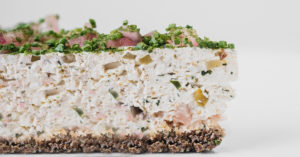 — торт с селедкой (700 руб.) совсем не торт из адского народного кейтеринга «к празднику» (с русалками из морковки и майонезной чешуей). Внешне торт из Savva похож на кусок аккуратного чизкейка с шариком сорбета: корж со вкусом бородинского хлеба и что-то селедочное солено-огуречное вместо творожной начинки. Сверху зеленая пудра, а не сахарная. Красный сорбет по ощущениям — реально винегрет, предположительно как в «Петровиче».
