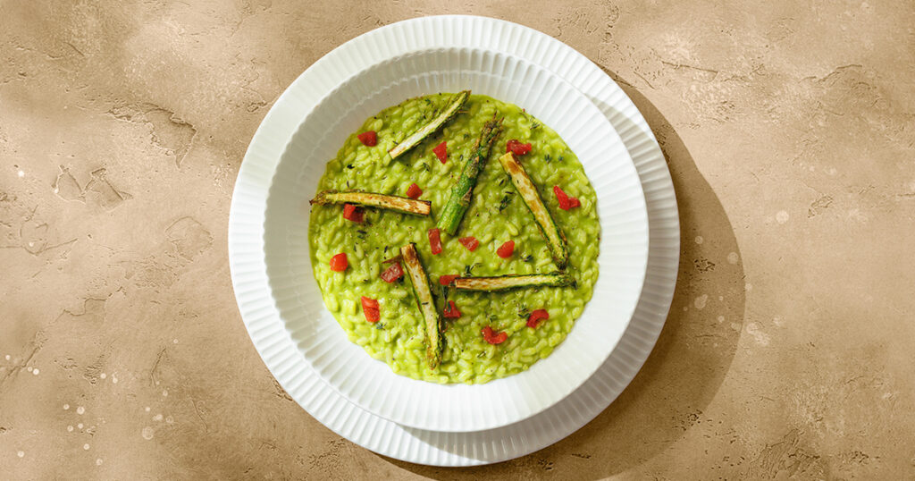 — заманчивое зеленое ризотто с молодой спаржей (2200 руб.) или ароматные лингвини с белыми грибами с добавкой запеченных томатов (2400 руб.) — пример плотного обеда с умозрительной аскезой. На практике никаких страданий и лишений не чувствуется. Важно, что побеги спаржи сохраняют свою упругость, а грибной соус в пасте домашней выделки пахнет абсолютно головокружительно;