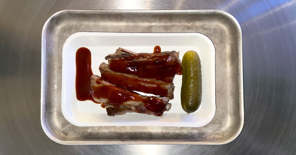 — порция свиных ребер BBQ стоит 790 руб. Они в сто раз вкуснее любого бургера (особенно с бурым соленым огурцом, который входит в программу этого тура);