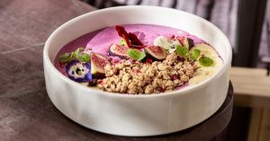 — добавить в сезонный салат с инжиром и апельсином (860 руб.) рикотту и йогурт с карри — смелый ход, заслуживающий уважения;