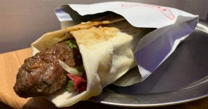 — пахучая кюфта, теплый хлеб, нормального качества салат — все соответствует формату уличной еды: платишь мало, но ешь много и с удовольствием;