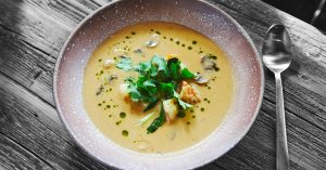 — тайский фантазийный суп пахнет качественным бульоном и кинзой;