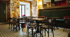 — веселенькие обои, состаренные стены и пол в бело-черной плитке, вентиляторы под потолком, буфетная стойка бара с зеркалом и часами, кран со статуей, афиши-постеры и пианино с подсвечниками — вся эта забавная мешанина выстраивает нужный ассоциативный ряд и очень хочется тут же заказать коктейль Creole Mint Julep (900 руб.) с ромом, клубникой и содовой;