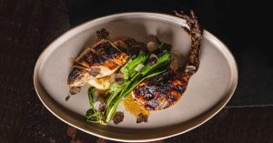 — «Цыпленок, запеченный на углях, со шпинатом и трюфелем» (1500 руб.) заманчиво пахнет трюфелем и костром одновременно. Миниатюрные маринованные луковицы — на цыпленке, а чесночное пюре — под ним. Все вместе — безупречная еда, жаркая во всех смыслах этого слова;