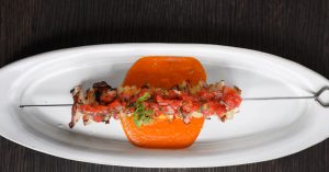 — закуска «Тунец, чили, марокканский лимон» (1300 руб.) — чудесная история, рассказанная с восторгом и уважением и к тунцу, и к лимону;