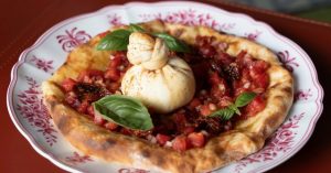 — буррата из сулугуни с начинкой из сыра надуги со сливками и чечилом (890 руб.) — прорыв в ресторанной индустрии и грузинской кухне. Сальса из печеных перцев и розовых томатов прокачана соусом ткемали — крайне любопытно;