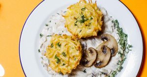 — Блюдо «Кугель» (280 руб.) — эта два гнезда капкейка из макарон в грибном соусе. Вещи странные и спорные, но макароны с сыром и запеканку из них никто не отменял. Следовательно, если сам кугель вам несимпатичен и кажется суховат, то грибной соус с луком и сметаной — это прелесть что такое. С ним можно съесть все что угодно;