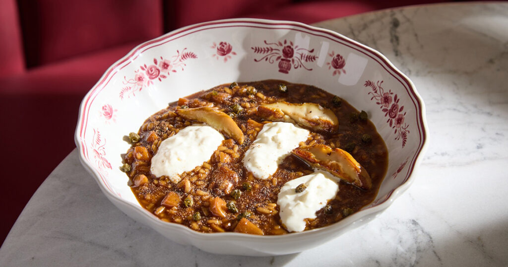 — канонические хиты старого Uilliam’s — ризотто по-бородински (1200 руб.), паппарделле с уткой (950 руб.), брускетта с крабом (1750 руб.), тартар из говядины (1200 руб.) — никуда не делись. Можно устраивать ностальгические посиделки для знатоков;
