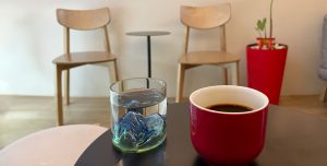 — кофейня живет как бы в общежитии с другими маленькими бизнесами и их офисами. Да и похожа на общежитие, аккуратное и нешумное, но все равно. Лучше было бы в отдельном помещении.