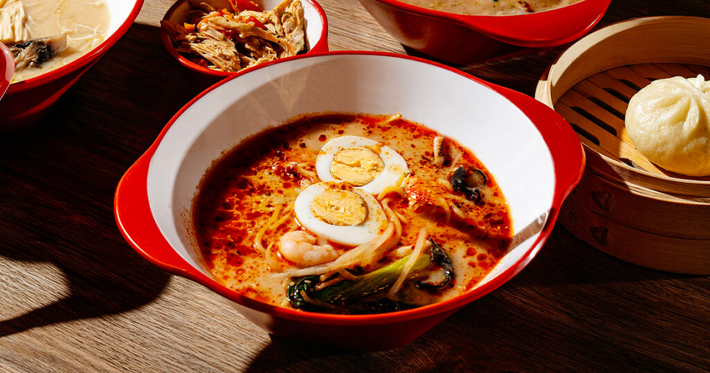 — когда все ингредиенты выбраны, осталось определиться с бульоном и остротой. Генеральный замысел супа малатан — огненно-острый. Перечным маньякам будет что вспомнить. Остальным рекомендую просить мягкий вариант классического бульона и далее действовать по обстоятельствам (дополнительная острота стоит 50 рублей);