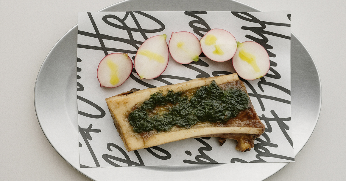 — среди мелких закусок попадается порция запеченного костного мозга с тостом и редиской (700 руб.), прелестно;