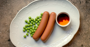 — десерт «Творожный сырок» (550 руб.) — это аттракцион в виде двух сосисок, зеленого горошка и горчицы с кетчупом. Горошек — марципановый. Горчица — это соус со вкусом очень спелого манго. Кетчуп — веселый клубничный соус. А сосиски — те самые творожные сырки в тонкой хрустящей глазури из молочного шоколада. Начинка сырков скорее крем, чем творог, со сливочным маслом по рецептам ГОСТа. Очаровательное хулиганство о скрепах нашего общепита;