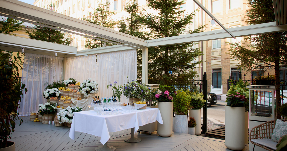 Этот летний поп-ап ресторан — совместный проект ресторатора Аркадия Новикова, Екатерины Пугачевой и шеф-повара Луиджи Маньи. Планируется, что он будет работать до конца сентября.