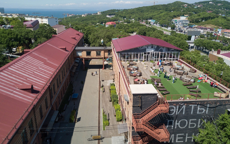 В «Заре» показывают работы приморских художников, а также устраивают большие выставки, сделанные совместно с Третьяковской галереей, музеем имени Щусева, Музеем кино. Кроме того, в арт-резиденцию приезжают работать западные и российские художники. Мой любимый уроженец Гаваны, сегодняшний житель Екатеринбурга, художник стрит-арта Тимофей Радя был резидентом «Зари» в прошлом году. Тогда он и увековечил свое послание на кирпичной стене одного из цехов.
