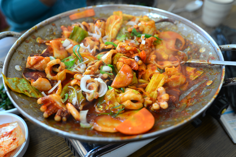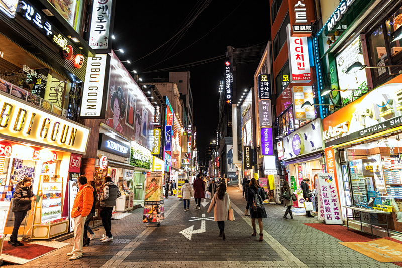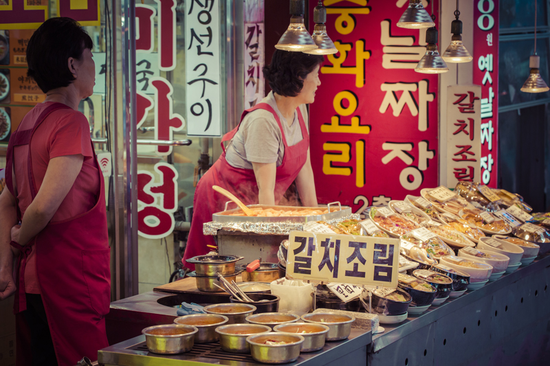 Еще позже прекращают работу продавцы уличной еды. Передвижные кухни на колесах тянутся по основной улице района Myeong-dong. Запахи печеного картофеля, осьминогов с кинзой, лобстеров, жареного мяса парализуют волю.